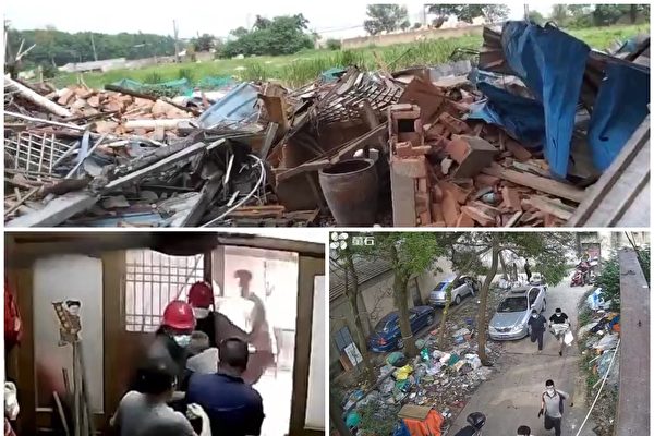 江苏省无锡市马昭良夫妻被地方官员带领不明身份的人暴力控制他夫妻俩并对其房屋进行强拆。(受访者提供/大纪元合成)