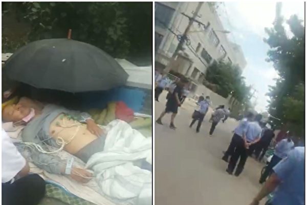 黑龙江省访民肖书君在最高院门口被法警打瘫,黑省警方又将其绑架到二千里外的小医院,其妻尹登珍被湖北当局绑架进黑监狱。(受访者提供/大纪元合成)