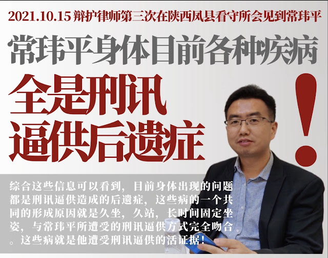 陈紫娟(常玮平律师妻子):辩护律师第三次会见常玮平情况通报——目前身体各种疾病,全是刑讯逼供后遗症!(2021年10月17日)
