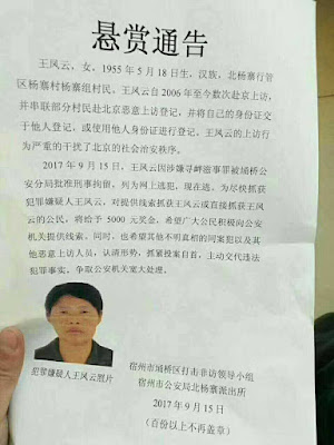 2021年12月2日,本网获悉:安徽省宿州市埇桥区原杨寨乡杨寨村的原民选村主任王凤云,到国家信访局提交了村书记杨春华违法犯罪行为的举报材料,很快引来大批地方截访人员进京,并于11月30日被截回,然后就与外界失去了任何联系。