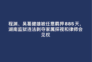 对仍遭在狱中的人权捍卫者吴葛健雄、程渊的境况,本网将持续关注。