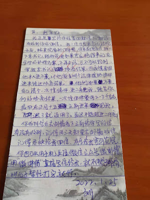 2022年2月18日,本网获悉:近日,福建访民刘建新从福州市看守所给妻子江国英寄出书信,称当局已对构陷他的所谓寻衅滋事罪一案,在2022年1月19日进行秘密开庭,公诉机关建议量刑4年!其妻子证实,一审仓山区法院没有通知家属旁听。