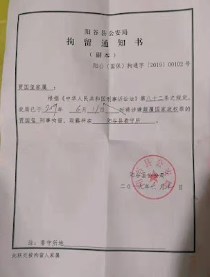 2019年6月11日,突然被山东省阳谷县警方以不明原因抓捕,并被以涉嫌“颠覆国家政权罪”刑拘,自此失联;