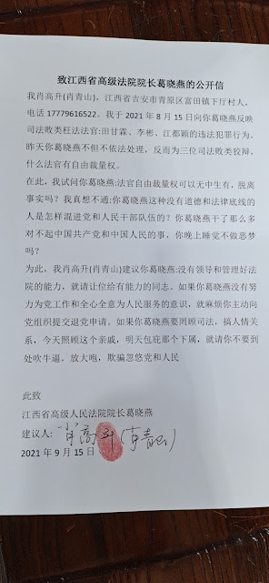 为此,我肖高升(肖青山)建议你葛晓燕:没有领导和管理好法院的能力,就请让位给有能力的同志。如果你葛晓燕没有努力为党工作和全心全意为人民服务的意识,就麻烦你主动向党组织提交退出申请。如果你葛晓燕要人情关系,今天照顾这个亲戚,明天包庇那个下属,就请你不要到处吹牛逼,放大咆,欺骗忽悠党和人民。