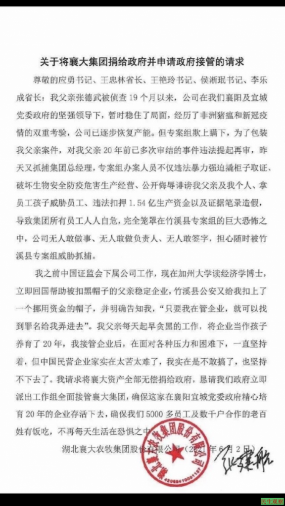 【民生观察2021年6月3日消息】2019年11月,湖北襄大集团董事长张德武及公…