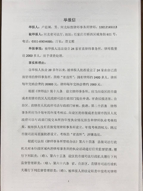 2019年12月15日,石家庄市律协非法对我立案调查,2021年2月1日向市司法…