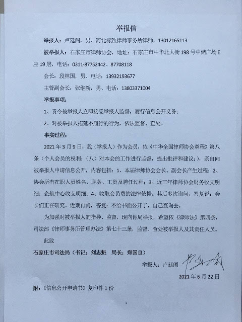 律师,都被强行要求加入律师协会,并被强行收取会员费,石家庄市律师协会每年向个人会…