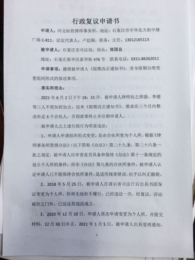 【公民权利网2021年6月16日消息】河北省标致律师事务所卢廷阁律师致电本网称:…