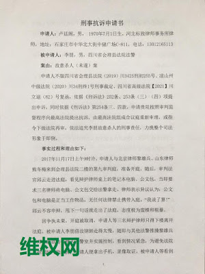 ——向最高检申请抗诉,继续追究会理法院法警李朋涉嫌故意杀人罪刑事责任 2017年…