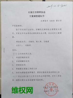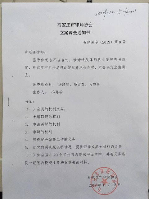 石家庄市律师协会,以我“发表不当言论,涉嫌违反律师执业管理有关规定,石家庄市司法…