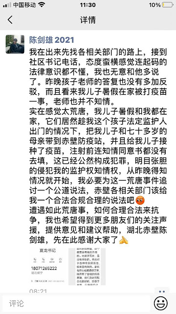 陈剑雄:关于本人小孩遭遇强制接种疫苗说明