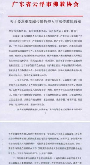 广东省云浮市佛教协会限制藏传佛教在中国内地传播