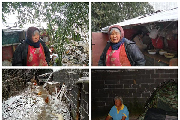 王宇家2013年遭强拆,母亲管瑞华搭起窝棚在原址上守候。(受访者提供)