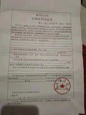 陈德琴说:2021年4月7日,潢川公安局控审科刘云飞半道上拦截并以“寻衅滋事”拘留我,还收走我手机家里的门上钥匙等,我获得自由后,到7月13日的公安局长接待日,去要被扣押的物品,又被以“寻衅滋事”拘留15日。在被拘留时期,我浑身无力,肝脏部位和胃部莫名疼疼,出拘留所多天,也恢复不过气来。在我被拘留期间,我前夫钱秀成找片警王全才,询问为什么老是要无端拘留我,片警王全才没有说出个所以然,就叫我前夫回家,并把一桶饮用水送他,让带回家吃。