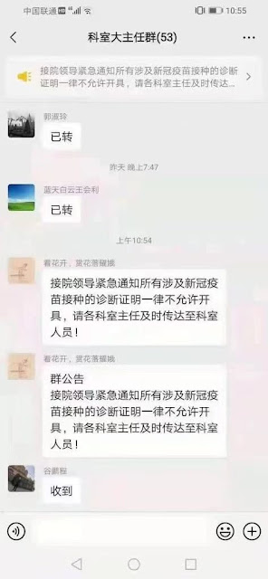 对地方政府的无法无天视而不见,足见当局已经默许。为了防止接种疫苗出现毒副作用的民众维权,部分地区的卫健部门已经下发通知,要求所有涉及新冠疫苗接种的诊断证明都不得开具。等于是出现毒副作用和引发的治疗费用,必须接种的民众自己承担,这也是很多民众不愿意接种的原因之一。