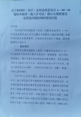 2021年9月18日,本网获悉:今天上午九点四十分,郑州下雨,中原区违法建设治理中心工作人员冒雨向宋金梅送达《关于柿园村(宋庄)安置房改造项目A-04-02地块未取得〈施工许可证〉擅自大规模建设安置房问题的调查情况回复》(简称《调查回复》),令人感动。