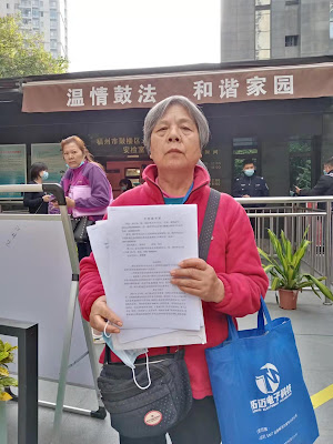 2021年11月12日,福建省福州市仓山区冤民林兰英诉仓山区城乡居民社会养老保险中心剥夺其失地农民养老金一案,在鼓楼区法院公开开庭审理。不料,法院以疫情为名,禁止林兰英的亲友参加旁听,更剥夺了林兰英的委托权利,拒绝林兰英的代理人参加庭审。最后,案件延期到本月23日进行。