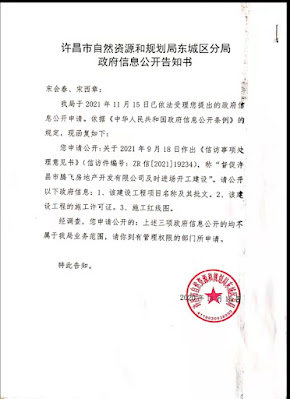 2021年11月23日,本网获悉:2021年11月22日,许昌市魏都区宋庄村民宋西章向许昌市人民政府邮寄《行政复议申请书》,请求依法确认许昌市自然资源和规划局东城区分局作出的《政府信息公开告知书》违法,责令其重新作出行政行为。