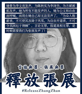 9月17日,无国界记者(RSF)与其他44家非政府组织联名公开致信习近平,要求无罪释放被判刑四年、狱中绝食病危的张展。
