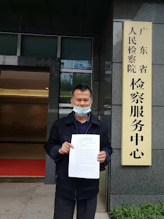 2022年1月12日,本网获悉:今天上午,广东知名维权人士、伤残军人陈风强的哥哥陈凤明,从珠海市金湾区赶到广东省会的广州市,就珠海市中级法院原院长黄炯猛在离任前,滥用院长监督程序,为同乡逃避执行而枉法裁判的犯罪行为,根据各级人大代表监督法和监察法的规定,向广东省人大常委会和广东省纪委监察委提交举报材料。