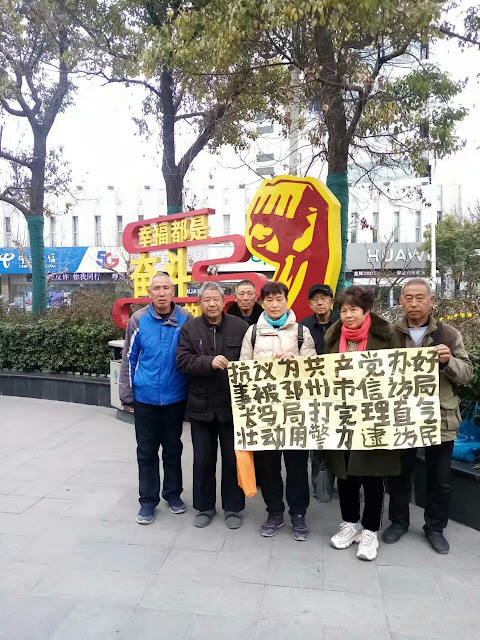 2022年3月11日,本网获悉: 2022年3月7日,维权人士吴继新在徐州广场广告牌下举牌抗议遭信访局长殴打一事,吴继新举牌写着:“为共产党办好事,被邳州信访局冯局长打完,理直气壮的动用警力逮访民”。