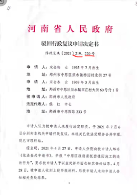 2022年3月23日,本网获悉:今天上午8点20分,河南省高级人民法院在网上召开听证会,调查宋会春诉河南省人民政府行政复议案,法官荆向丽主审。
