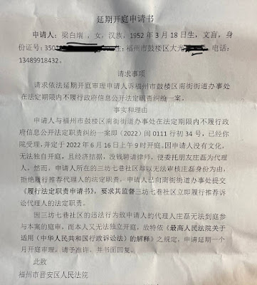 福州维权人士梁白端行政诉讼延期开庭的通报 2022年6月17日 公民权利网编辑维权动态 2022年6月16日,本网获悉:因其所在的福州市鼓楼区三坊七巷社区不履行推荐行政诉讼代理人法定职责,致使其代理人庄磊无法到庭参与庭审。梁向晋安区法院申请延期一个月开庭,法院已同意,同时取消了今日开庭事宜。 来源:维权网 请分享这个故事: