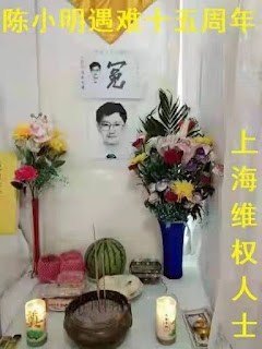 因为疫情原因,陈小明的家人提前给朋友们打招呼,希望大家不必再跑家中来,在微信群里祭奠就可以。但还是有魏勤、韩忠明、俞忠欢、段春芳、王哥等维权访民,来到了徐汇区桂林东街99弄15号3F邵金花老人的家,陪伴老人祭奠自己心目中的滩维权英烈陈小明。