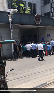 从现场访民提供的视频,没有获得接待的鄢雪玲一直在分局门口高声谴责,说上午9点接待开始,而排队拿到1号和2号票的访民,居然等到到12点了还没有轮到,怀疑进去的都是托,或者是好胡弄的访民,而门口大量警察维稳。另有一位女访民因为要求接待,被两个五大三粗的警察给强制押出,并扔在滚烫的柏油马路上。