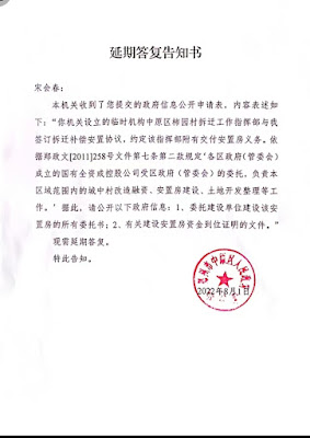2022年8月3日,本网获悉:2022年8月1日,郑州市中原区人民政府作出《延期答复告知书》,次日向宋会春送达。