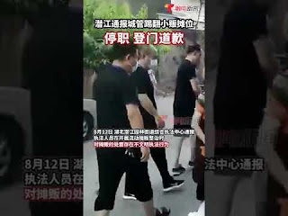 8月12日,潜江市园林街道综合执法中心通报称,城管原本是为了防止人员聚集、消除疫情传播风险,但是,相关人员在开展流动摊贩整治时,对摊贩不配合工作的情况处置不当,工作方法简单粗暴,存在不文明执法行为。目前,中心主要负责人已向街道党工委提交书面检查,对涉事执法人员予以停职处理,并责成其向当事群众登门道歉,赔偿经济损失,已取得当事群众谅解。