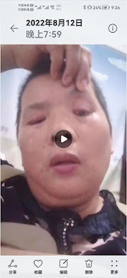 据朱晓进说,她在2022年8月11号,再次取得了由大中街道同德村陈祥林安排的维稳人员监视尾随跟踪的证据,这些中共“二十大”敏感时期维稳专班的违法分子立即回村部向陈祥林汇报了,第二天傍晚她驾电动轮椅去服装店了,在回家路上遭到这些维稳人员的突然袭击,眼睛被喷化学品。